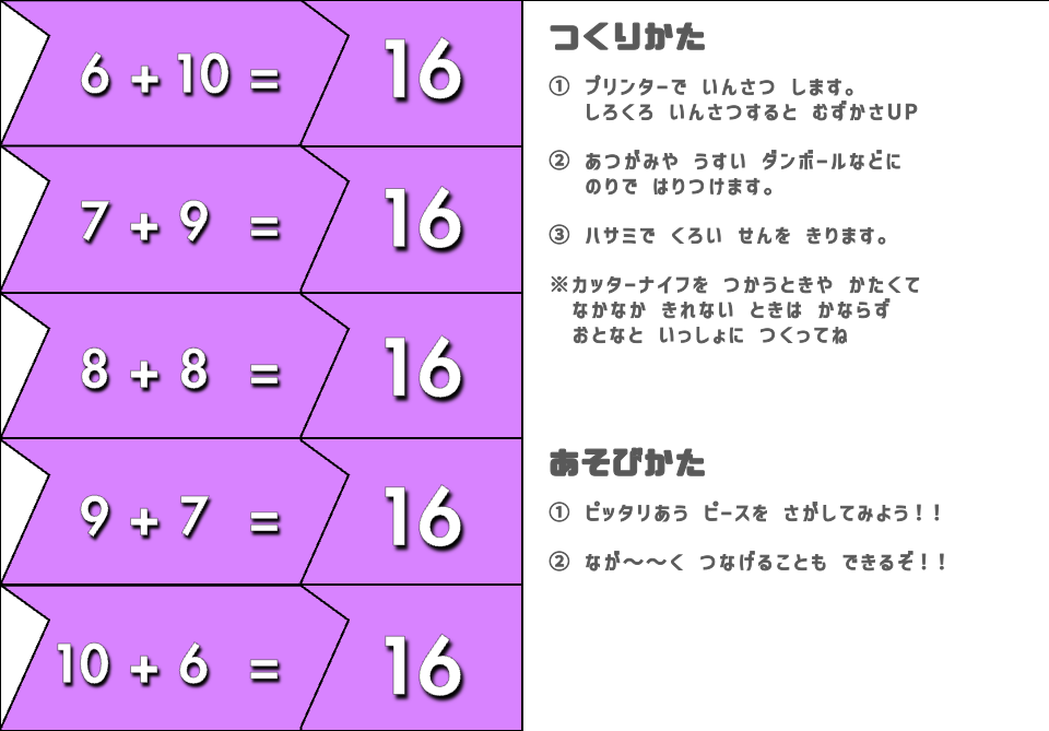🔑【小1】合体たし算パズル|楽しく遊びながら計算ができるようになる算数教材 会員限定 2022/12/162023/6/7 会員限定小1教材算数教材限定教材 たし算パズル小1算数計算 式の和が等しいものだけ繋ぐことができる新感覚の計算パズルです! 遊んでいるうちにたし算の交換法則や結合法則などの感覚が身についていきます! こんな子にオススメ ✅ くり上がりのあるたし算が苦手 ✅ 遊びながら楽しく勉強したい ✅ 工作で手先を使う練習もしたい ここから先は会員限定です。 ログイン または 会員登録 をしてください