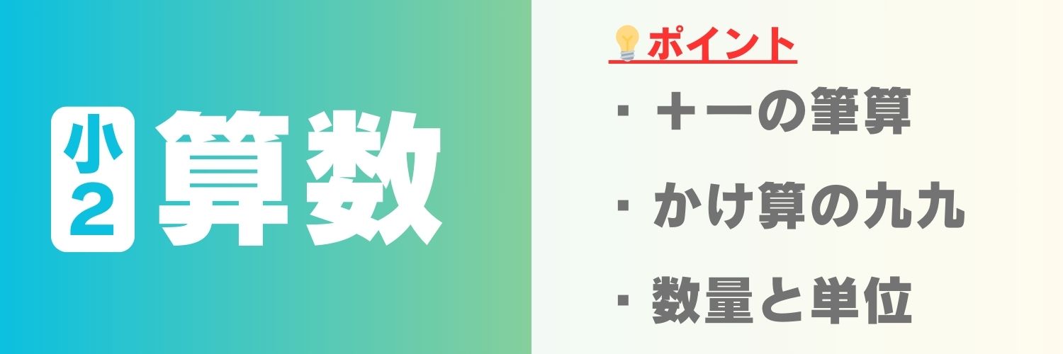 『かけ算九九』が初登場するほか、『たし算ひき算の筆算』、『1000までの数と位』、『水のかさ・長さ』といった数量の単位、『時刻と時間』の計算など数学の基礎となる重要な内容を学びます📖