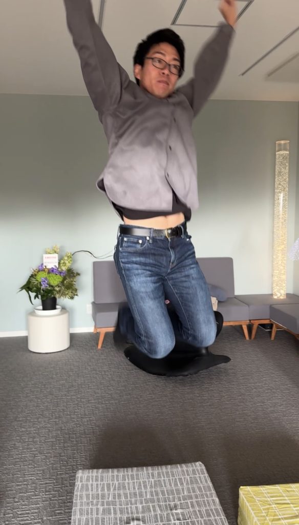 一般向けにも、座るだけで自然と正しい姿勢に整う「p!nto」や、トランポリンのように跳ねるのにクッションのように柔らかくてコンパクトな「Tovocca」などの商品を販売しておられます。
