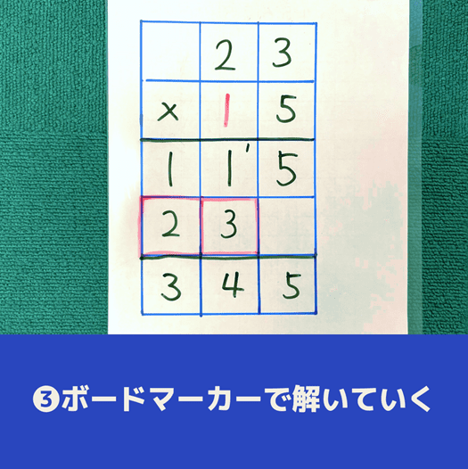 例えば【23×15】のような筆算をするとき