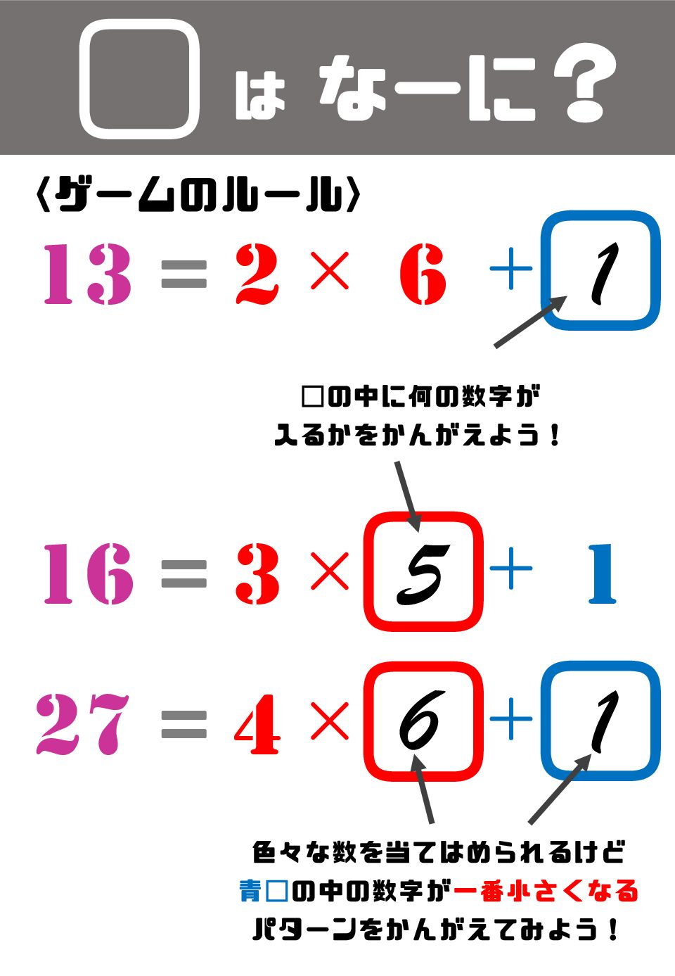 『□はなーに?』を使えば、難解なあまりのある割り算も脳トレ感覚で簡単に理解できるようになります!!